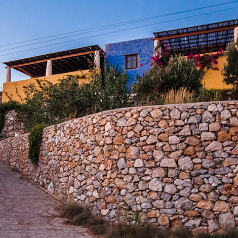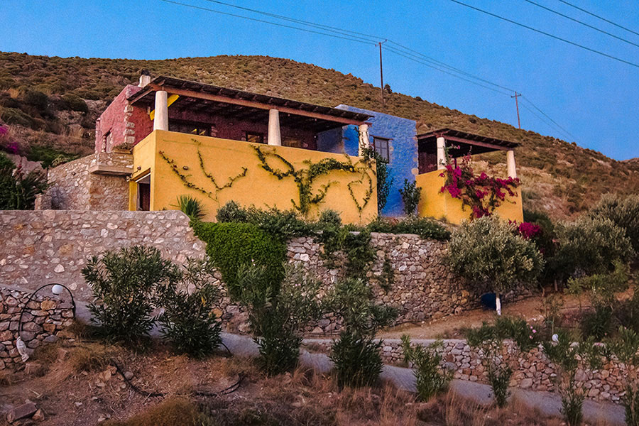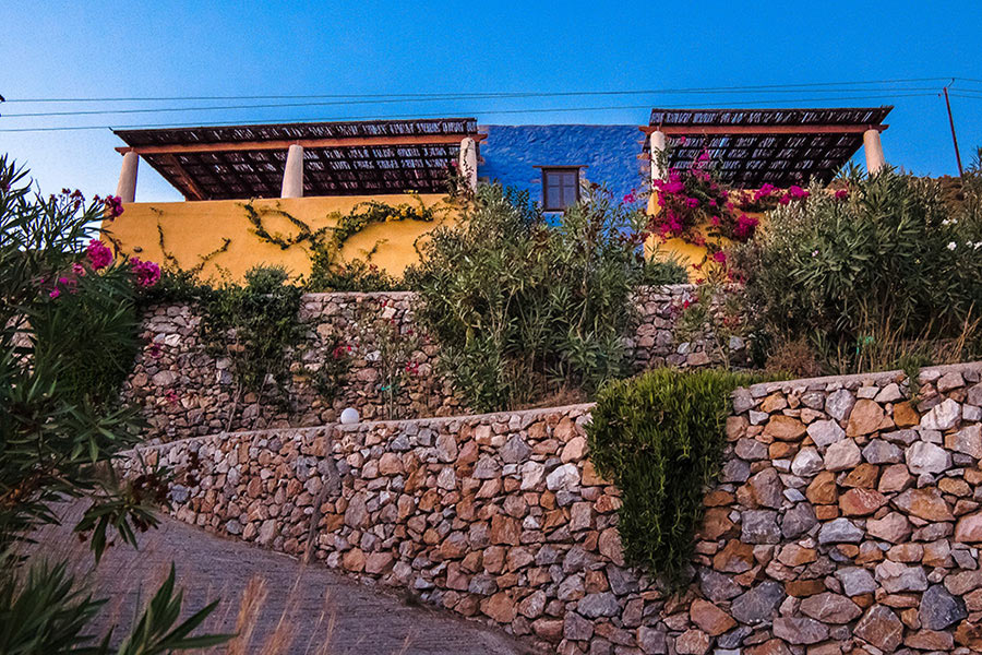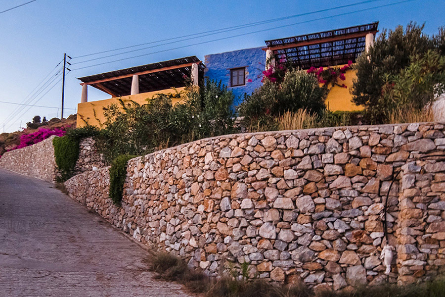 It's a stone made house in Xirokambos area in the island of Leros, in distance of 50 meters from the sea, in a land of 2.000 sq.m. with a big steep slope. It has a big view over Xirokambos bay, as well as to the open sea and small islands that make a small local polynesia.