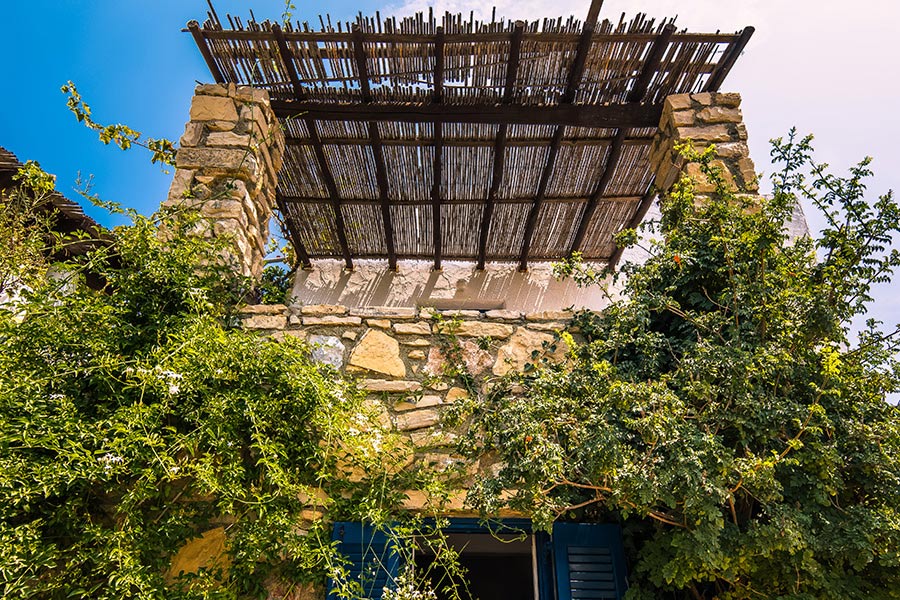 We made the plans and started to build this house in April 1999. We finished it in August of the same year, some days before his guests were coming. It's a house with concrete scheleton, but the walls of the ground floor are made in stone. It's small (54 sq.m. all of it in two floors) but completely functional and has all comforts. In the ground floor there is a living and dinning area as well as a kitchen. In the first floor there is a bedroom and a bathroom. But what makes this house exeptional and charming it's his semplicity and minimalism. Enjoy it ...