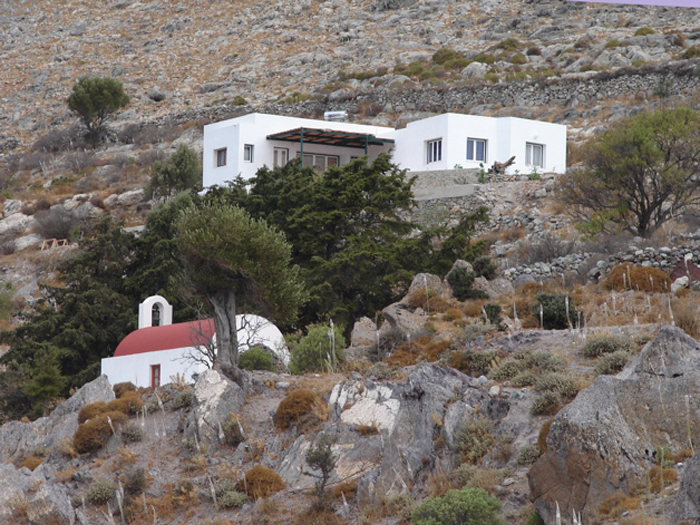 It is a modern (but with traditional elements) house on the hill over the Alinda bay.It was a challenge for us to try and put together a traditional Greek shape with a modern and minimalist design. Here you can see the result.