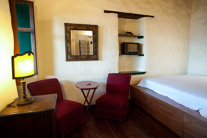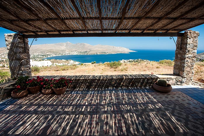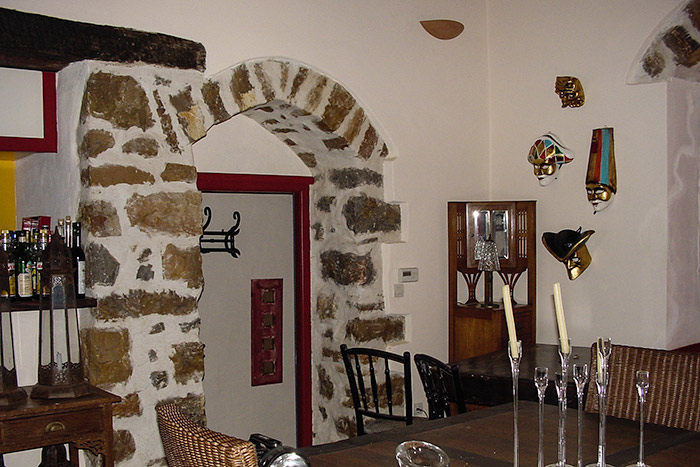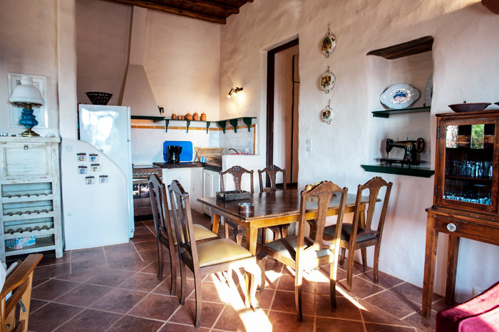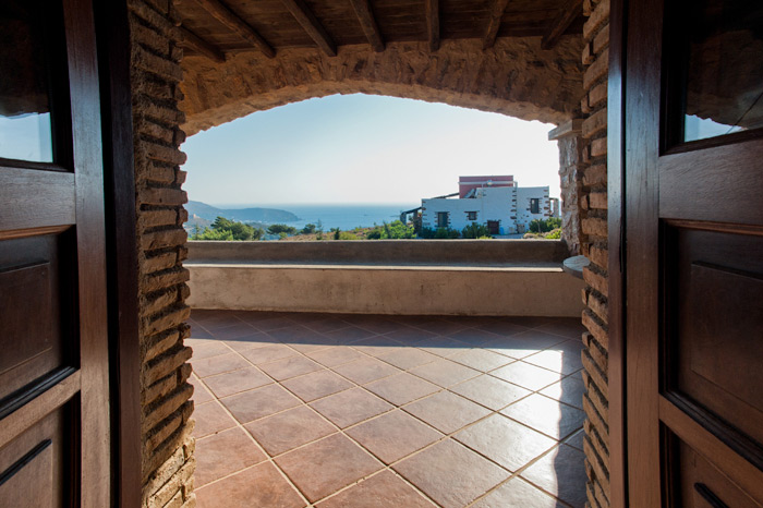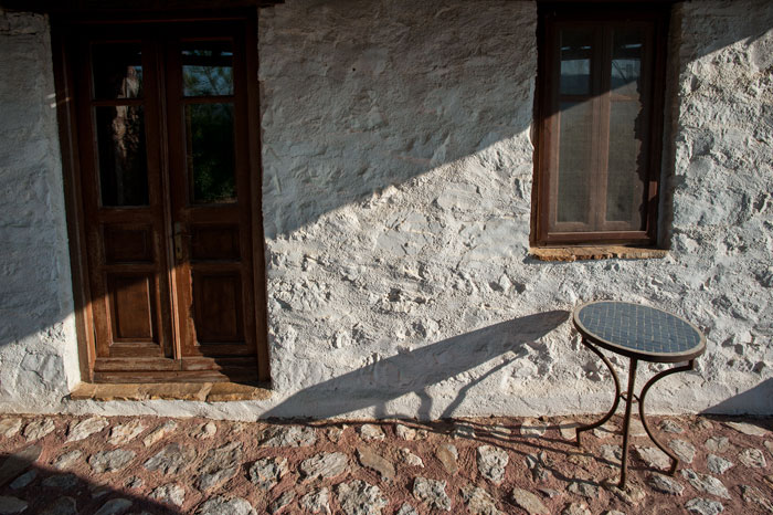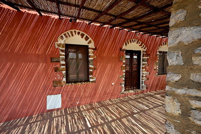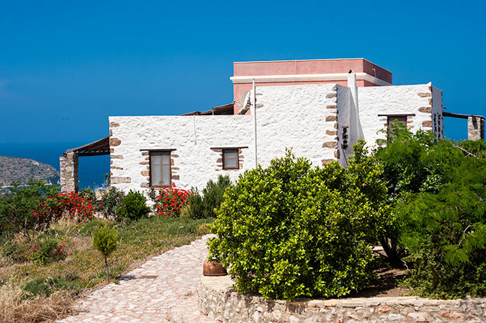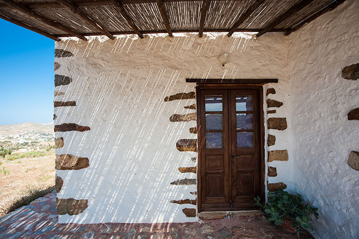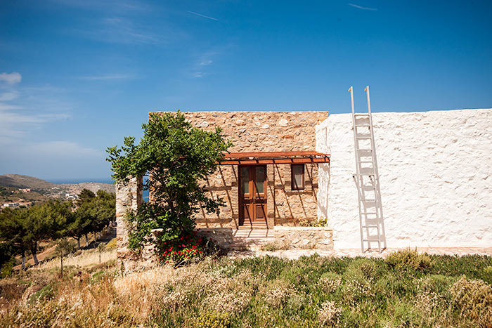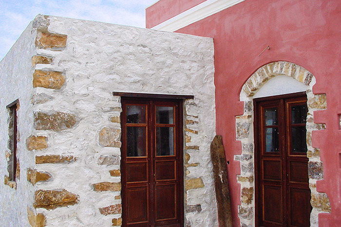 Έχουν κτισθεί τελείως με παραδοσιακό τρόπο, με πέτρα, ξύλινα πατώματα και ξύλινες οροφές. Τα κατασκευάσαμε τα έτη 2001-2002. Η κύρια οικία (των ιδιοκτητών) αποτελείται απο ένα τεράστιο καθιστικό που επικοινωνεί με την τραπεζαρία και την κουζίνα και δύο μεγάλα υπνοδωμάτια με λουτρό, σε ένα απο τα οποία κατασκευάστηκε παραδοσιακός κρέβατος. Έχει δύο κύριες βεράντες με μαγευτική θέα στη θάλασσα και το ηλιοβασίλεμα, μιά απο τις οποίες είναι προστατευμένη απο ανέμους. Η δεύτερη οικία (ο ξενώνας) αποτελείται απο έναν εννιαίο χώρο καθιστικού - κουζίνας - τραπεζαρίας και δύο υπνοδωμάτια με δικό του λουτρό το καθένα.