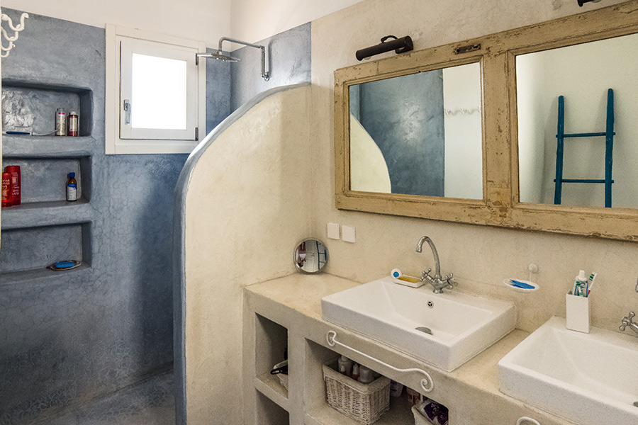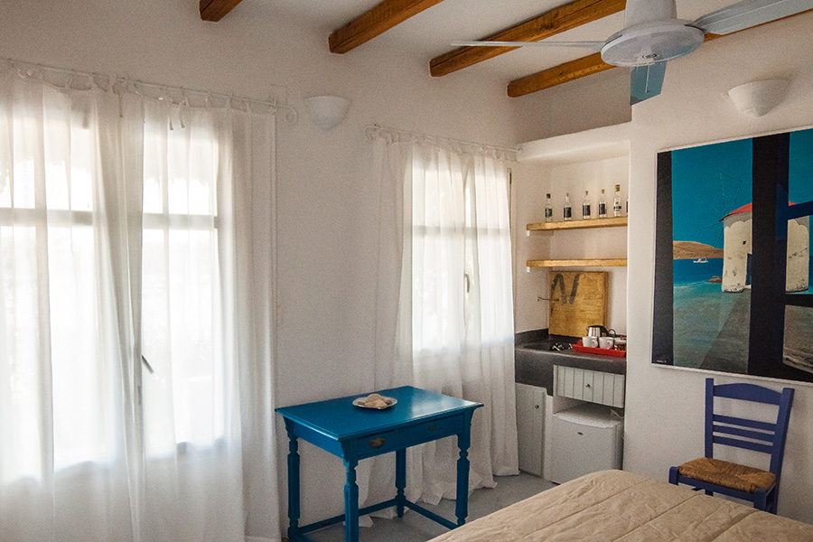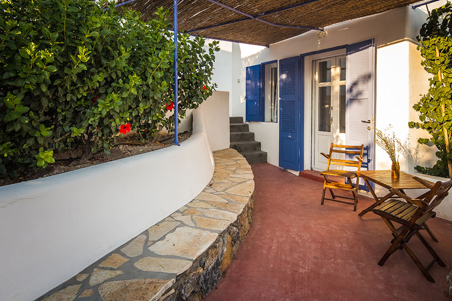 This is a house with two studios in a complex of two residences. You can see the other house of the complex here. The main part is the owners' residence and the studios are for guests. The whole complex is built in a plot of land of 1.000 m2, with a breathtaking view overlooking the Pandeli bay, as well the open sea and other islands.
