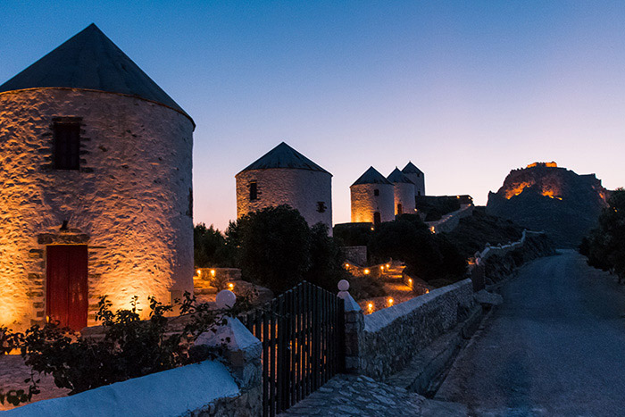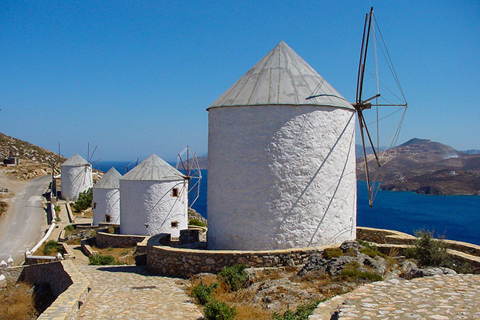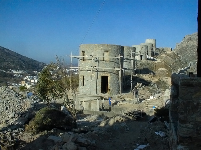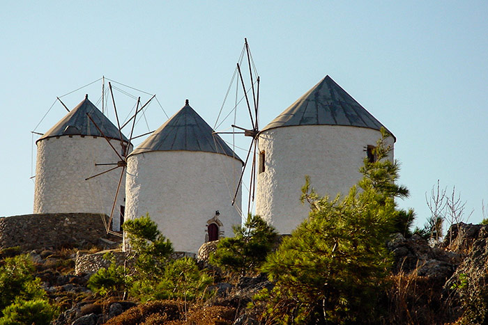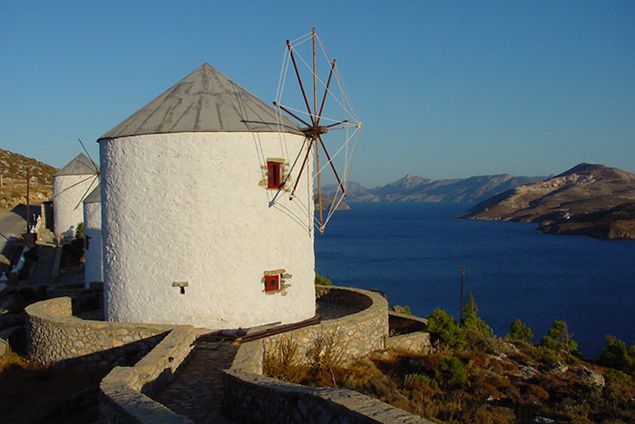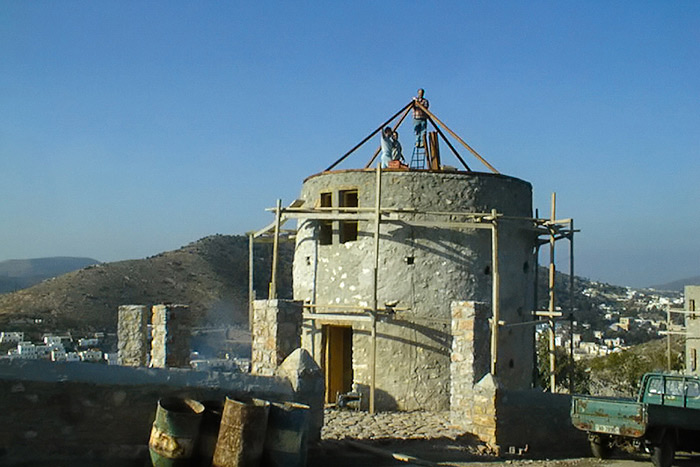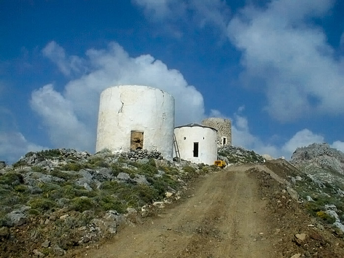 There are six Wind Mills standing today on the top of the hill beside the Leros Castle, which were restored and rehabilitated by Domon-architects (and Habit staff), under my strict direction and surveillance, in the years 2000 to 2001, with EU funds. They were featured in the opening ceremony video for the 2004 Olympics in Athens.
